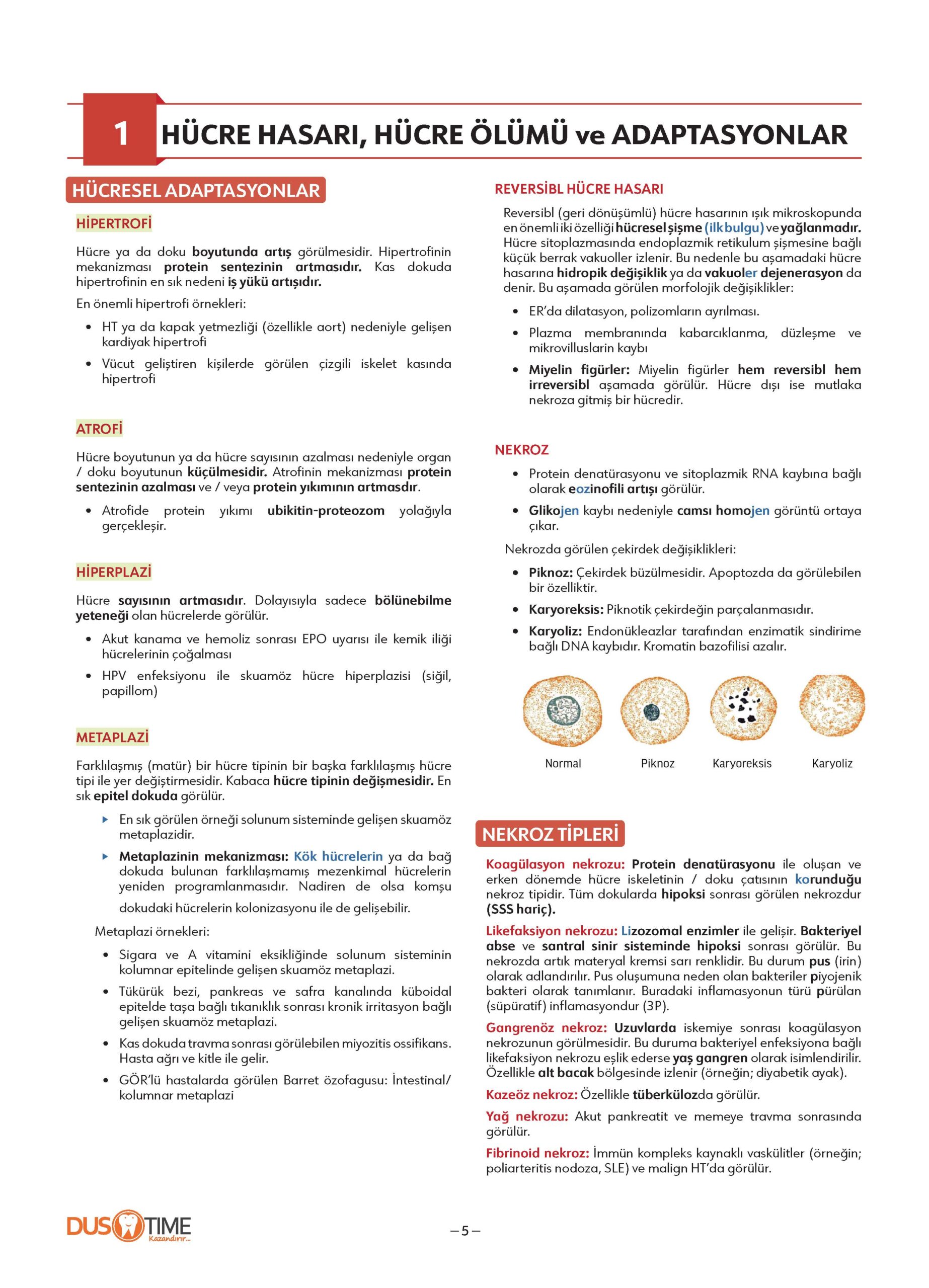 Konu: Hücresel Adaptasyonlar, Hücre Hasarı ve Hücre Ölümü
